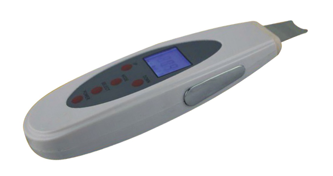 Ultrasonic skin scrubber causes Strong ultrasonic vibration, generated at the tip of the scrubber, causing the lavation water to get mix with sebum, toxic substances, bacteria, cosmetic residue, ect. And then strong vaporization will remove the horny substances, sebum ect.